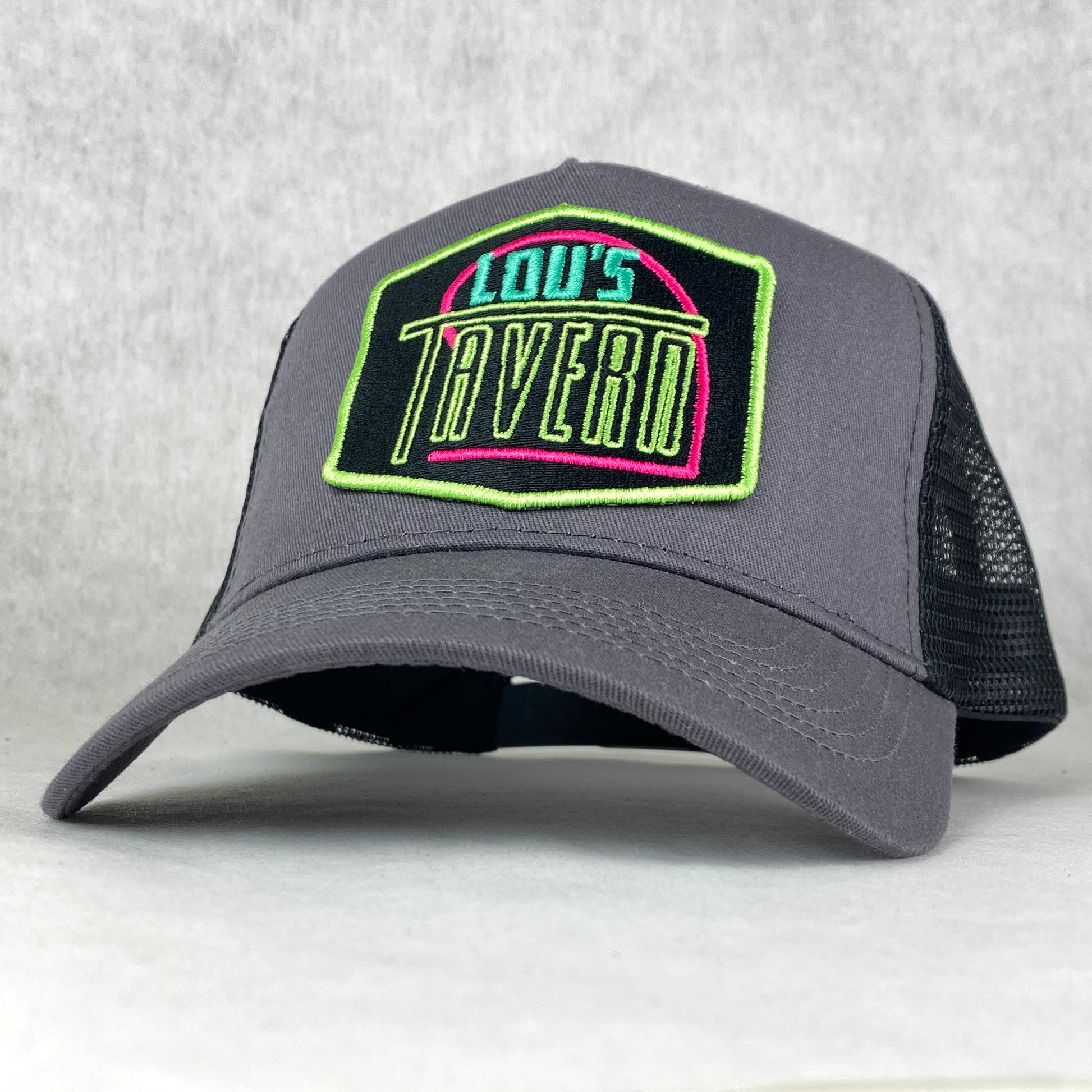 This vintage-style trucker cap features a bold embroidered patch for Lou’s Tavern — stitched in neon green, pink, and black with a retro-style font that screams late-night chaos. Inspired by Fight Club, it’s a low-key tribute to the underground world where things got... interesting.